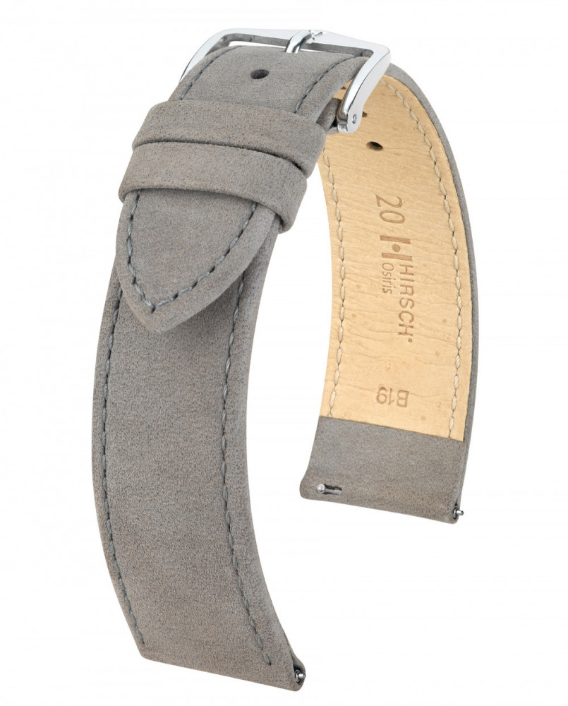 Hirsch Osiris Nubuck borjúbőr óraszíj, szürke, 18/16L
