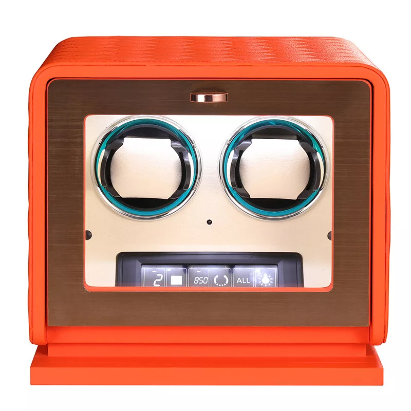 Varrott narancssárga színű bőr óraforgató 2 órához.