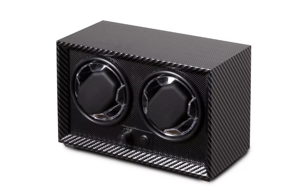 Karbon színű színű, fából készült óraforgató 2 órához.