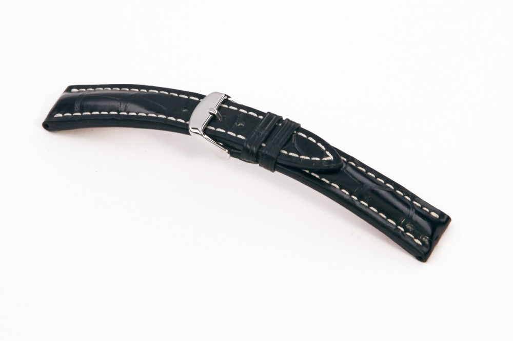 RIOS Jet Breitling aligátorbőr óraszíj, fekete, 22/18 mm