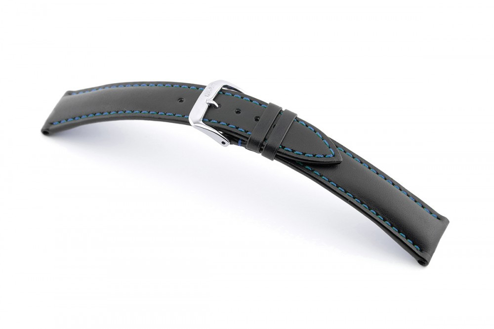 RIOS Smart bőr óraszíj, fekete/kék, 18/16 mm