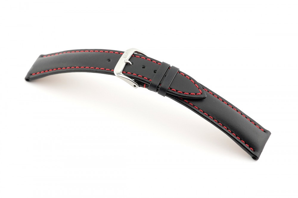 RIOS Smart bőr óraszíj, fekete/piros, 18/16 mm
